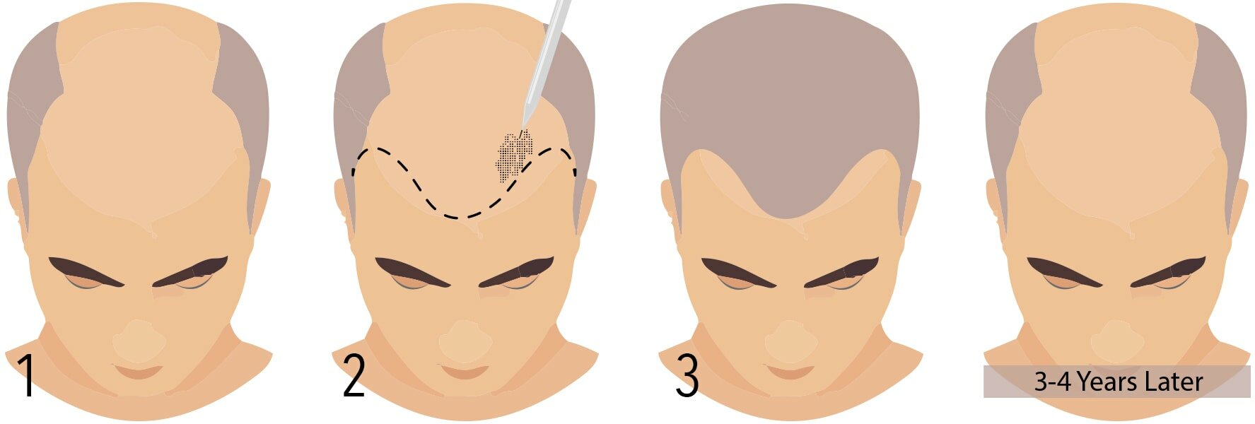 Bu yöntemde, sabit derinlikte atış yapan devirli bir cihaz kullanılmaktadır. Epidermisin yüzeysel kısmına işlenen mikro pigmentler ile gerçek saç kökleri taklit edilmektedir. Kafa derisinde saç kökü varmış görüntüsü yaratılmaya çalışılır. Amaç, saç ve kafa derisi arasındaki renk farkını aza indirgeyip daha açık renkte görünmesini engellemektir. Mikropigmentasyon (microblading), görüntüye dayalı geçici bir manipülasyon tekniğidir. Kalıcılığı, kişinin cilt yapısına bağlı olarak ortalama 3 ila 4 senedir. Saçlı deriye işlenen boyalar, bu sürenin sonunda vücuttan tamamen atılmaktadır.